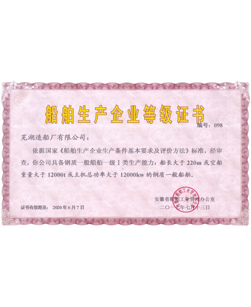 • 船舶生產(chǎn)企業(yè)等級(jí)證書