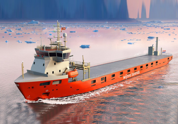 該船船長115.2米,型寬16.5米,型深8.5米,吃水6.20米,設(shè)計航速約14.0節(jié);動力系統(tǒng)采用LNG、燃油雙燃料推進,符合1AFS冰區(qū)及-30℃環(huán)境溫度條件下正常航行。